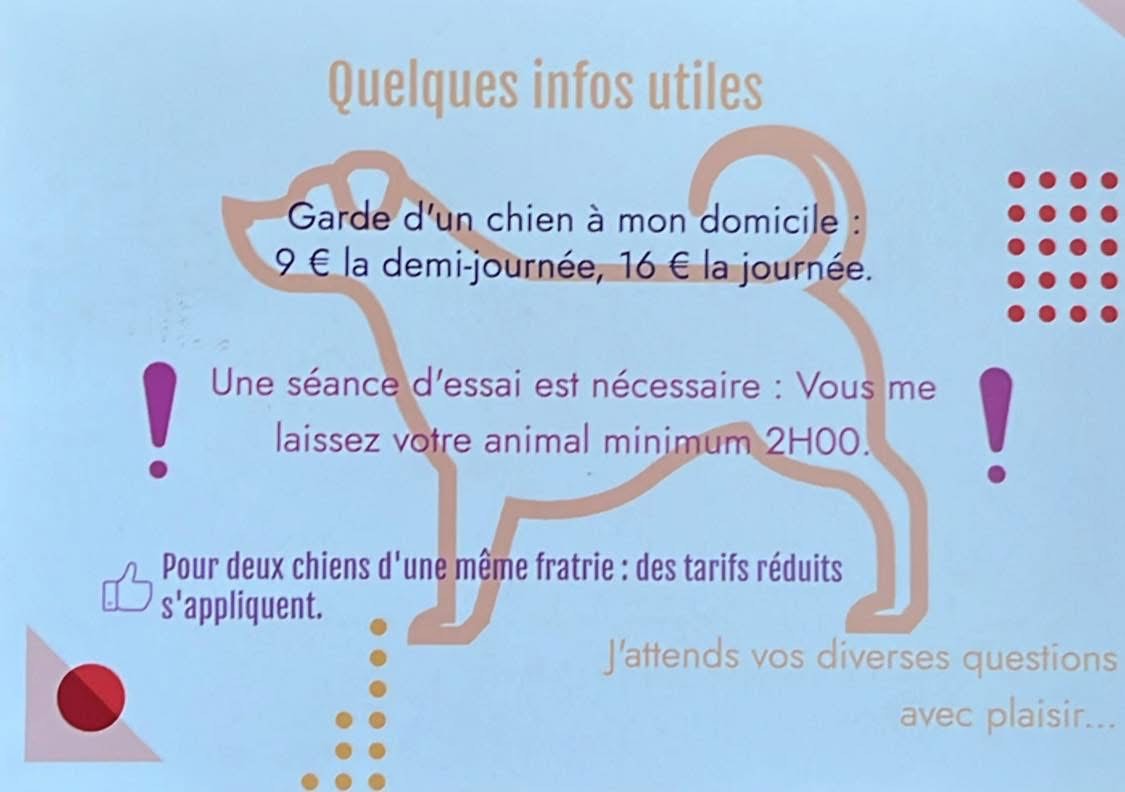 Mon conjoint et moi-même, nous vous proposons de garder vos loulous durant votre absence que ce soit à la journée, durant vos déplacements, un week-end ou pendant vos vacances 🥰🐾.